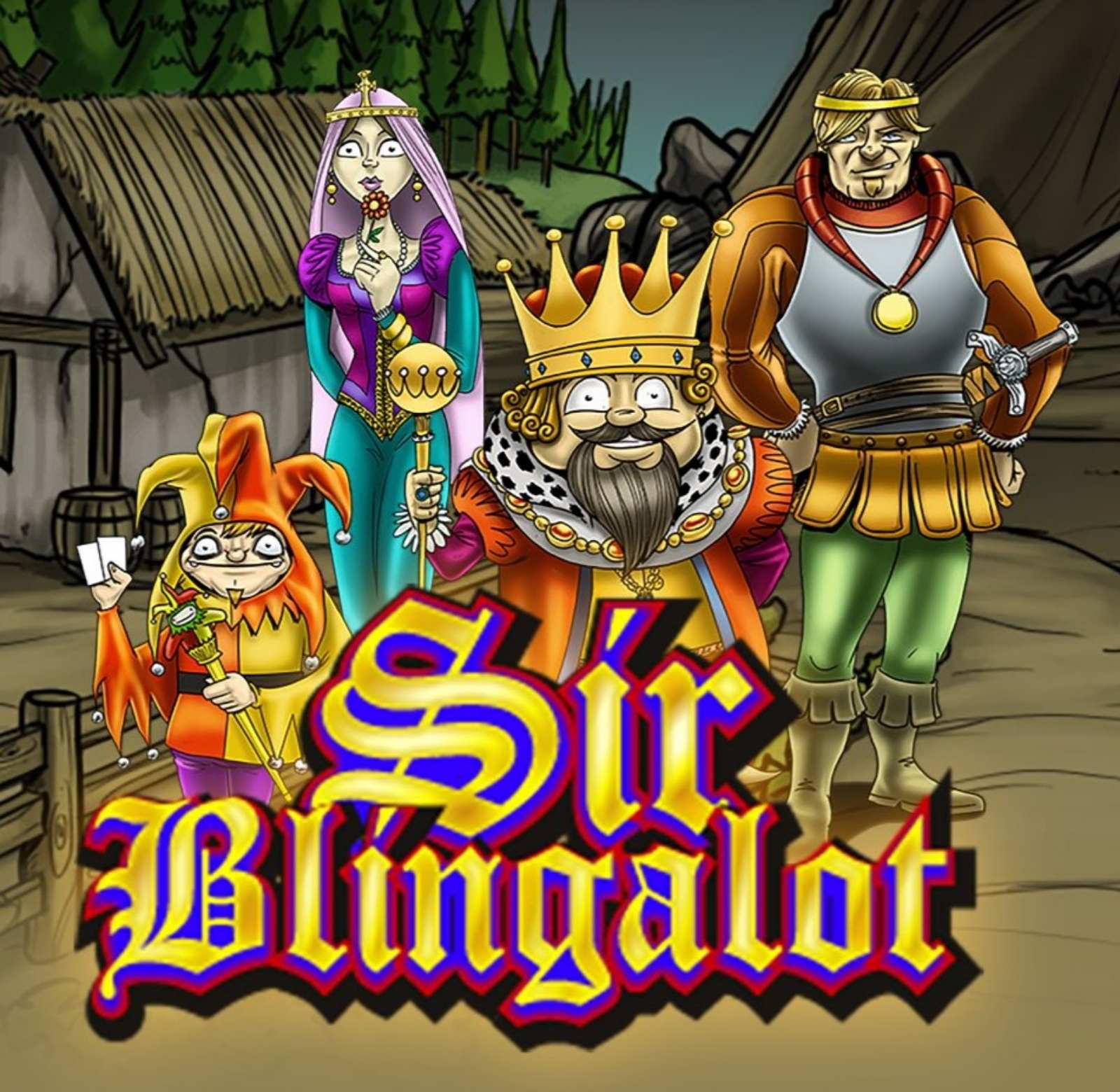 Online casino slot Sir Blingalot postavljen je na poljani, u neposrednoj blizini dvorca kralja Blingalota. Tabla je drvena, sa zakucanim ekserima na sebi, a pozadina table je tamno crvene boje.